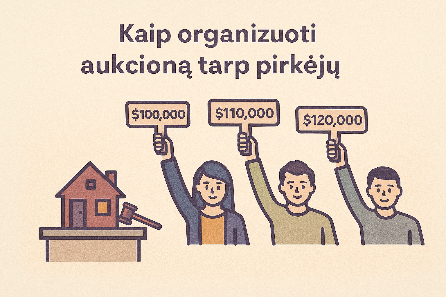 Paprastas aukcionas – tai ne agresyvus spaudimas, o tvarkingas sprendimo būdas, kai tavo NT realiai nori keli žmonės. Jei laikaisi skaidrumo ir aiškių terminų, pirkėjai tai priima normaliai, o tu maksimaliai išnaudoji rinkos situaciją.
